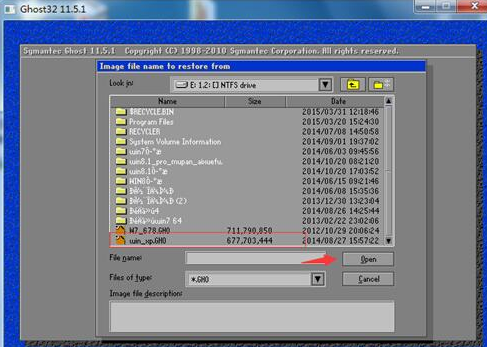 点击弹窗上面的下拉箭头,选择你下载的GHO系统文件所在盘.