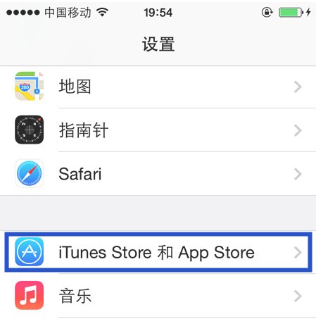 2、在iTunes Store和App Store的页面,点击Apple ID选项。