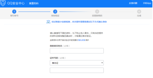 5.出来的页面填写审核资料,填写资料提交,身份验证成功就可以重置密码。如图所示:
