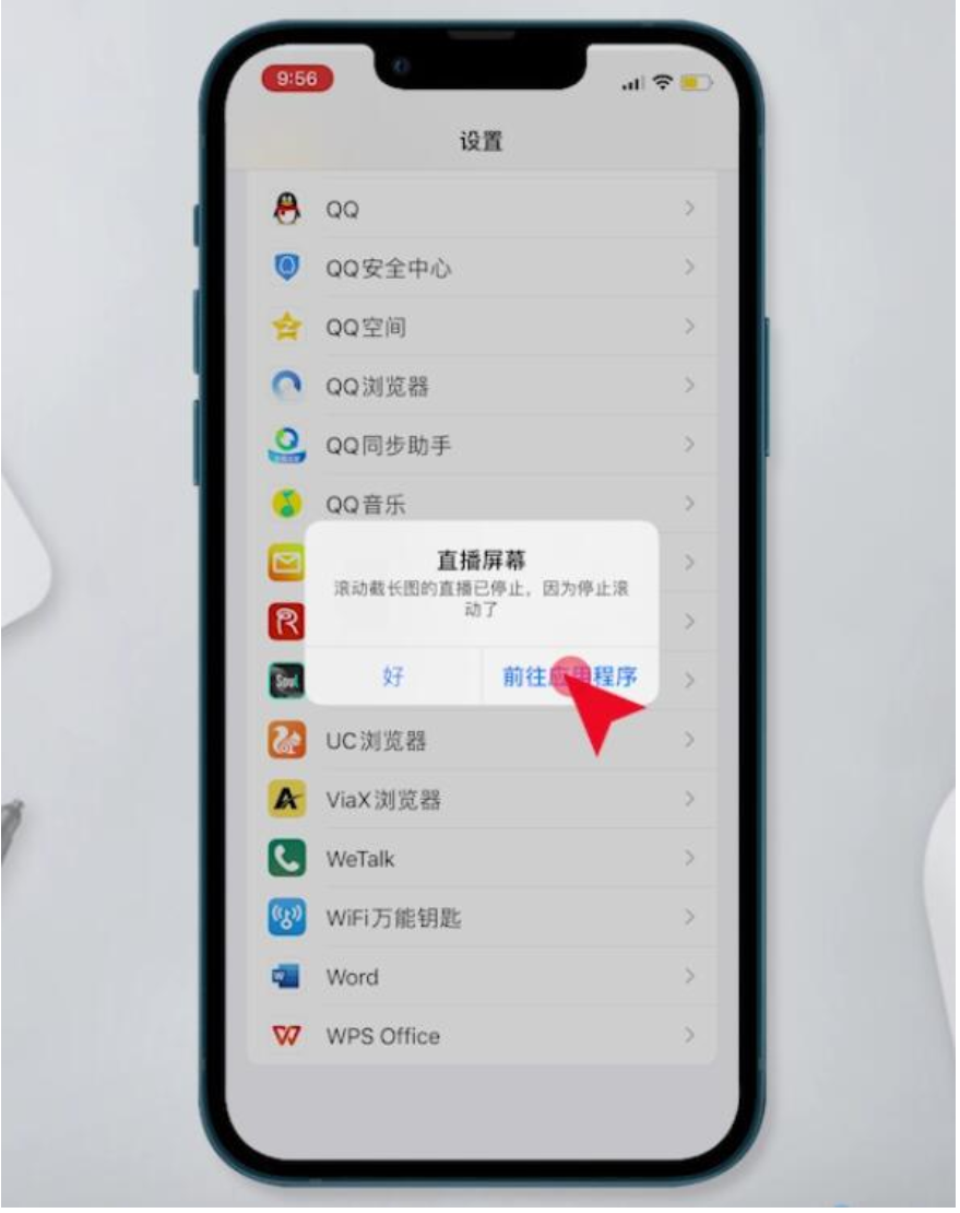 2.选择滚动截长图,点击开始直播,然后退出控制中心