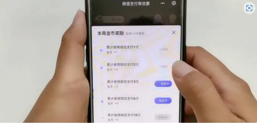 4、金币如何获得?比如我们使用微信支付就可以得到金币奖励。支付的次数越多,奖励就越多。最重要的一点就是金币任务每周一都会更新的。就相当于他这个金币在一周之内是有效的。