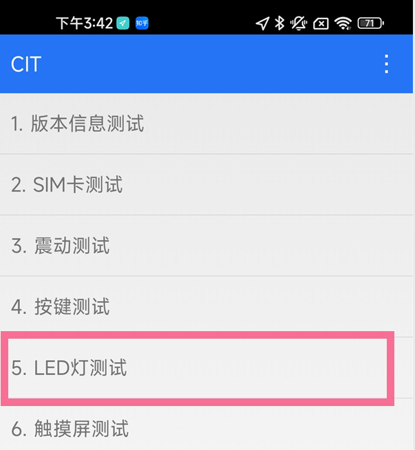 2、检查闪光灯是否有问题,在拨号键盘输入*#*#6484#*#*,进入硬件检测,点击“LED灯检测”。