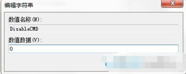 3、双击名称为“DisableCMD”的键值,修改为“0”,单击“确定”;