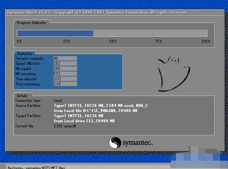 4、接下来电脑就会重启,重启后就会出现下图的界面,什么都不需要做,耐心等待进度条走完即可。
