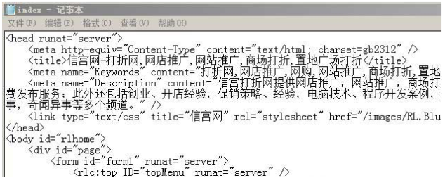2、如图打开aspx文件,上面都是网址代码,看起来非常吃力