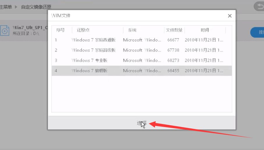 4、系统之家一键重装会自动加载下载好的系统镜像,我们点击挂载镜像,出现挂载镜像窗口,点击install.wim文件