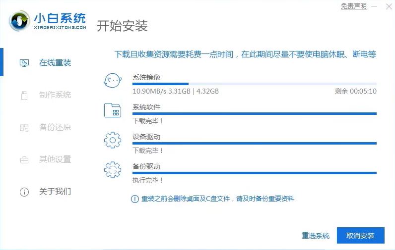 5.然后进入下载系统的环境,以下操作全部自动运行,只需要确保计算机未开机,处于休眠状态等即可。