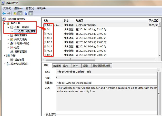 3、单击【任务计划程序库】,在右边可以看到许多准备就绪或者已经停用的的程序,这里将所有的程序全部右击选择【禁用】,如下图所示。完成后你的电脑就没有弹窗啦,以后有广告弹窗再重复以上步骤,找到未禁用的程序禁用就行了。