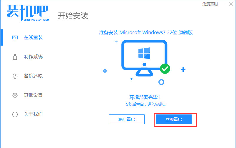 6.打开我们的装机吧一键重装系统软件,会检测安装环境然后自动安装系统镜像文件,等待安装完成。