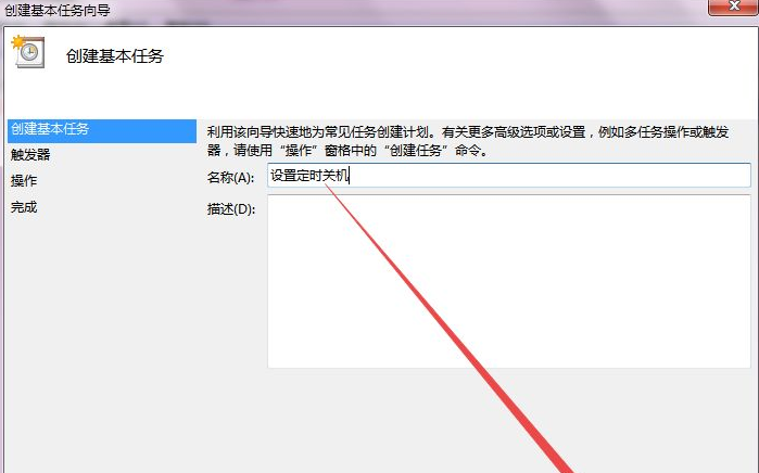 3.然后我们输入名称”设置定时关机“,点击下一步。
