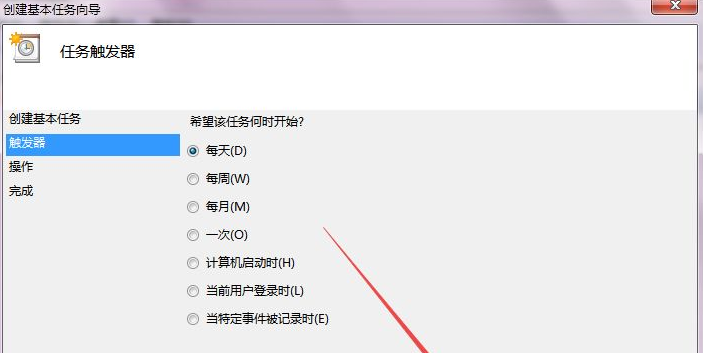 4.在弹出的 任务触发器 页面中根据实际需要选择,然后点击 下一步。