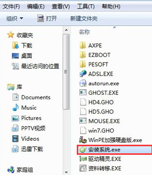 1.首先我们下载win7安装包,一般是iso格式,右键使用WinRAR等工具解压到D盘,一定不要解压到桌面或C盘,我们打开文件找到我们的”安装系统.exe“。