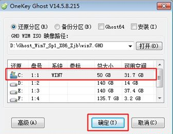 2.接着我们双击“安装系统.exe”打开onekey ghost安装界面,选择安装在C盘,点击”确定“按钮。
