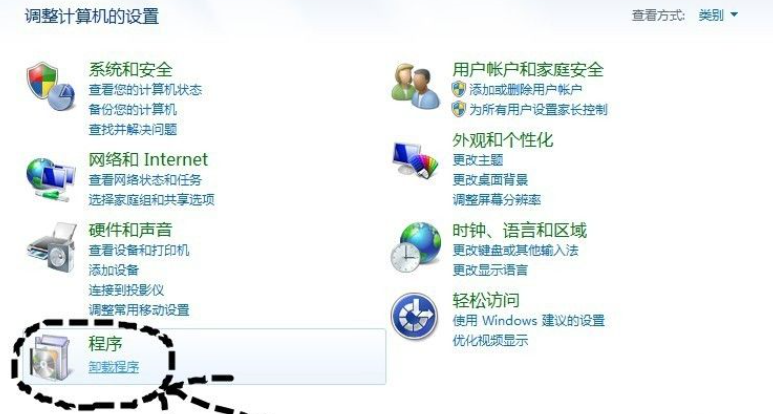 3、控制面板的左下角有“程序”,单击“卸载程序”子选项。