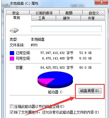4.点击容量右边的“磁盘清除”按钮,将进入垃圾文件和日志文件。