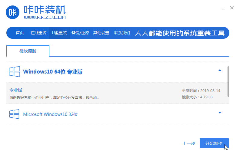 2.选择需要安装的windows系统,点击开始生产。(以win10系统安装为例)