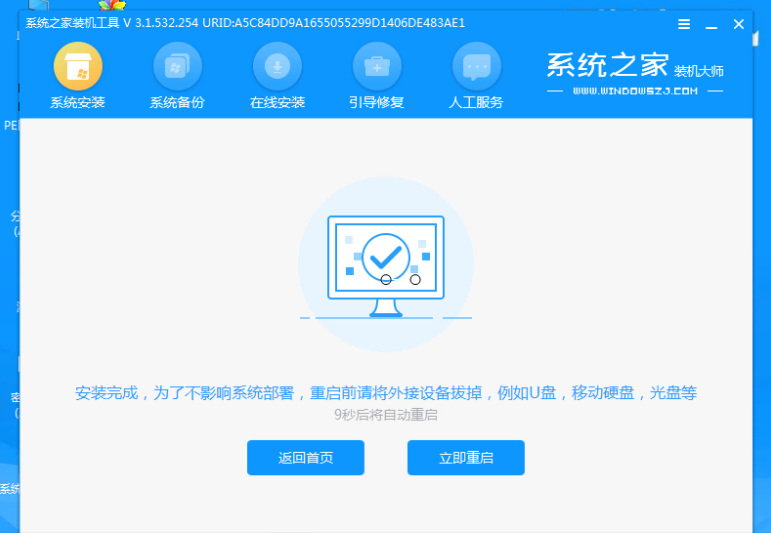 9.系统安装完成后,我们将U盘移除,然后点击【立即重启】。