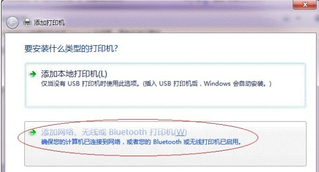 2.接下来,选择添加网络.无线或Bluetooth打印机,点击下一步。