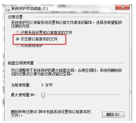 4、在下面这个窗口中,点击仅还原以前版本的文件,然后点击确定即可;