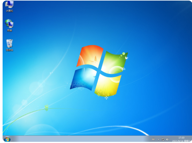7、然后重启电脑,进入到安装好的win7界面即表示系统安装成功。