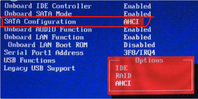 2、找到硬盘模式,也就是SATA configuration,用方向键选中并回车。在弹出界面中,选择IDE兼容模式回车确认。如果原来就是IDE的话则设置为AHCI。最后按下F10保存退出,重启电脑即可。