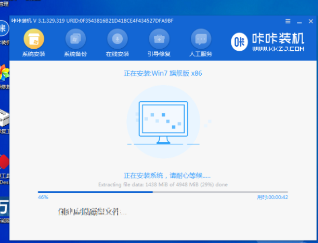 6、进入pe系统后,会自动开始安装win7精简版系统,提示安装成功后重启电脑。