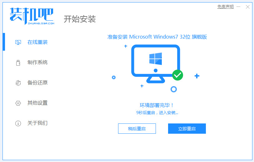 1、下载并安装“装机吧系统装机大师”软件,双击打开软件,进入在线重装界面,选择此次要安装win7系统。