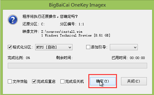 点击“是(Y)”开始还原系统,耐心等待系统还原过程的完成。