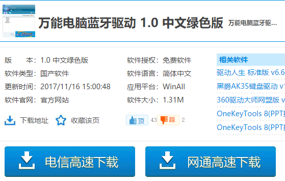 网上搜索“笔记本蓝牙驱动”,即可进入页面下载。