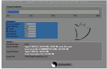 下面就是电脑win7一键还原的安装界面,进度满了之后电脑再次重启就进入还原后的win7系统桌面了。