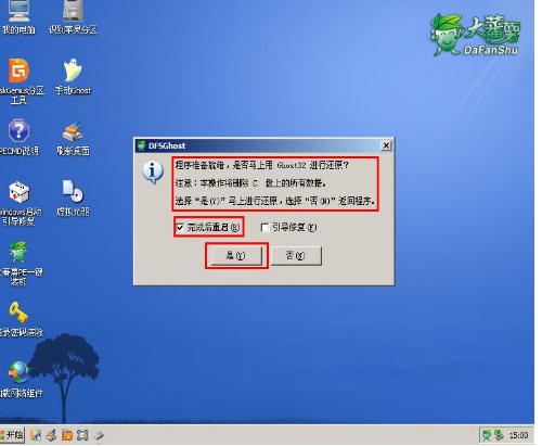 会弹出“DFSGhost”的提示窗口。此时,点击“是(Y)”按钮