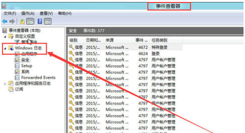 在开始-->菜单中输入:EventVwr.msc, 回车出现"事件查看器",