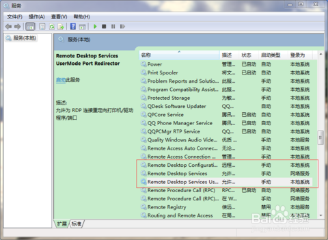然后用上面我说的这种方法同样设置Remote Desktop Services、Remote Desktop Services UserMode Port Redirector这两个服务。