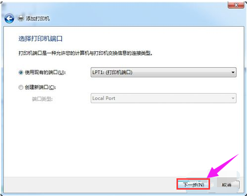 选择添加本地打印机,无论是什么接口的只要是有线连到电脑 的就选此项