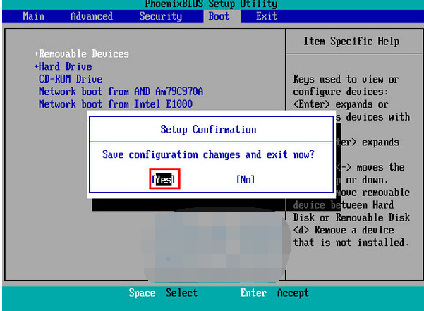 4、设置完成后,按F10,在弹出窗口中选择“是”,按Enter确认,然后重新启动后即可从U盘启动