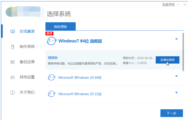 2、接着我们可以选择自己想要的系统安装,这里小编建议安装软件推荐适合电脑的操作系统。然后点击安装选项。