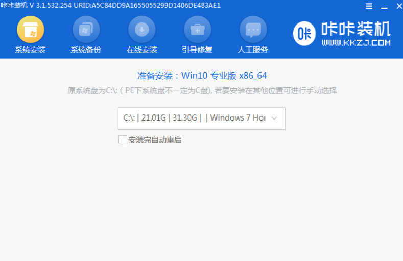 1、网上搜索咔咔装机然后下载这个咔咔装机软件,并将u盘插入电脑。然后选择“U盘模式”进入。