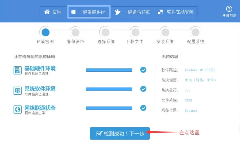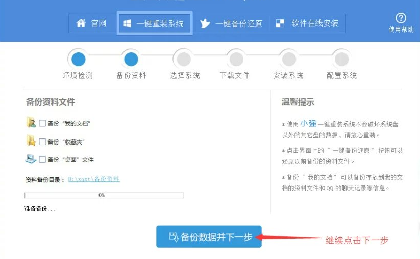 2、系统会帮助你检测电脑情况,根据提示做好备份。