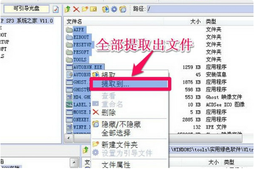 4、如果要提取ISO映像文件,选择要提取的文件或文件夹,可以选一个或者全部选择,然后在右键菜单中选择“提取到...”。
