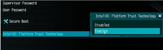 3、找到并进入“Security”选项卡,找到其中的“Intel Platform Trust Technology (PTT)”。