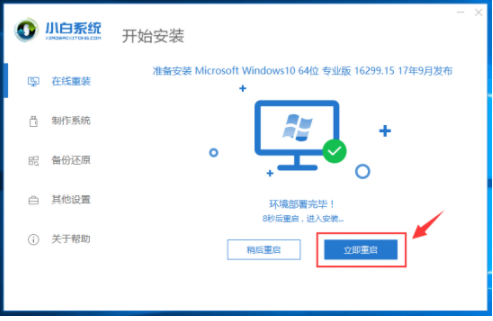 5、如果您在电脑附近,可以手动点击,否则计算机将在10秒后自动重启,如下图所示: