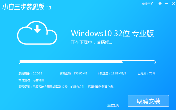 1.安装前退出安全软件,然后在小白系统官网下载小白三步安装软件并打开。默认情况下,建议安装Windows10,点击立即重新安装。