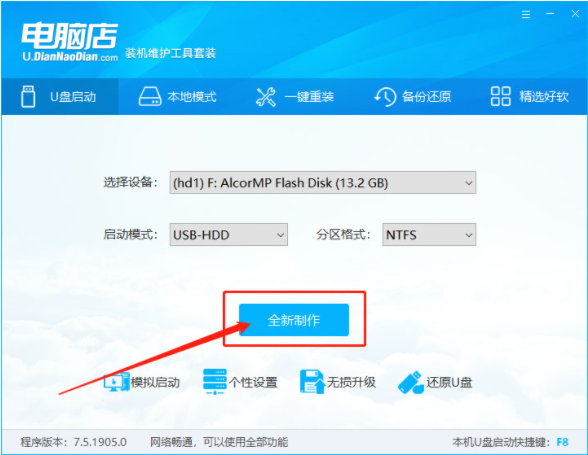1.下载电脑商店u盘装机工具,制作一个U盘启动盘,需要注意,当u盘制做启动盘时,程序会自动格式化U盘,因此U盘数据备份要注意。