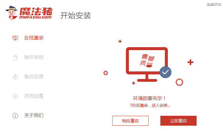 4.在重新启动之后进入pe系统,魔法猪系统重装大师将自动帮助我们重新安装系统。