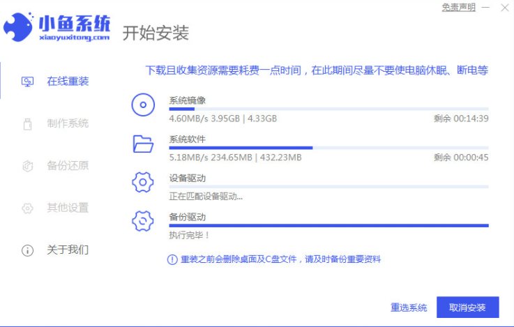 1、先在台式电脑上下载安装小鱼一键重装系统工具并打开,关闭电脑的杀毒软件,备份c盘重要资料。然后选择需要安装的系统点击安装此系统。