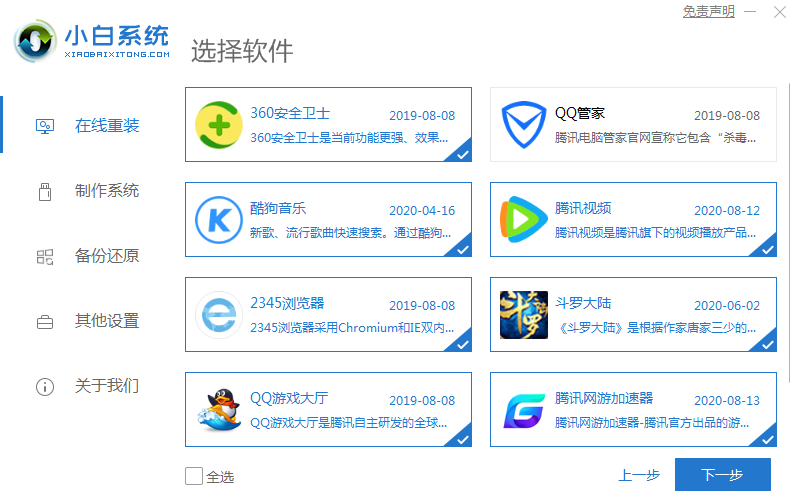 8、选择需要备份系统或者文件文档、QQ聊天记录之类的,如无需要备份,勾选后点击下一步,下图所示: