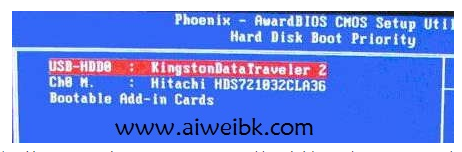 (2)按回车键进入,再选择Hard Disk Boot Priority。如图: