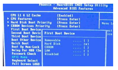 (1)先是按向下方向键选择Advanced BIOS Features。如图: