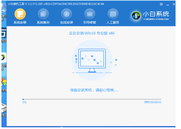 5、进入pe系统后,小白装机工具会自动安装系统。