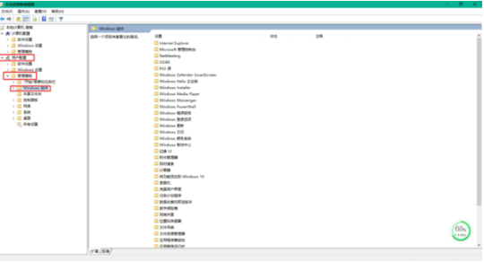 3,接着系统会弹出【本地组策略编辑器】的窗口,在此界面的左侧依次展开【用户配置】——【管理模板】——【Windows组件】选项。